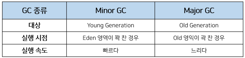 - Old 영역에 대한 가비지 컬렉션(Garbage Collection)을 Major GC라고 부른다.