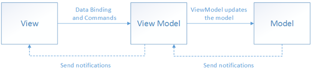 MVVM은 Model-View-ViewModel의 약자로, 각각은 아래와 같은 역할을 담당하며 이를 도식으로 나타내면 아래의 그림과 같다.