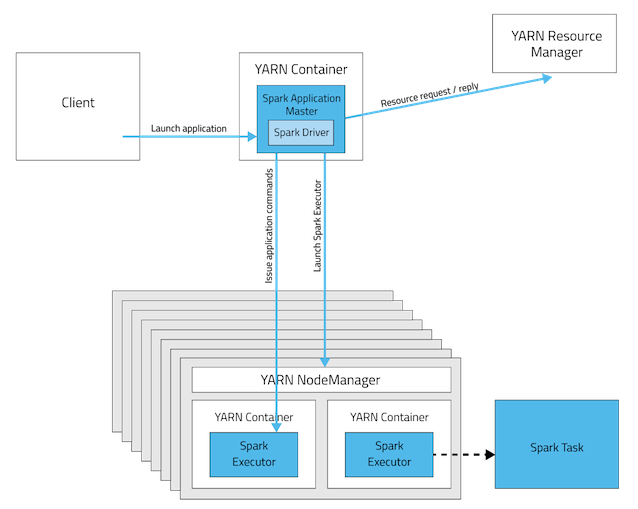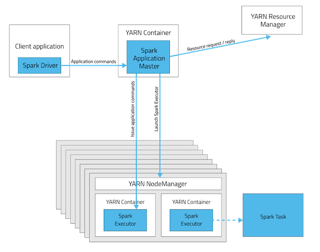 - 이미 Hadoop Yarn을 배포했거나 배포하려는 사용자는 사전 설치나 관리 엑세스 없이 Spark를 실행할 수 있다.