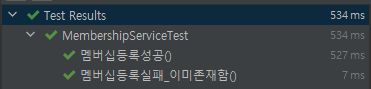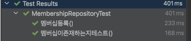 첫 테스트를 성공시키기까지 여러 번 테스트를 실행하고, 수정하는 작업을 반복하였다. 이러한 작업 흐름이 TDD의 흐름이며, 이러한 흐름을 유지한 채로, 멤버십을 등록하는 Repository 개발을 이어가보도록 하자.