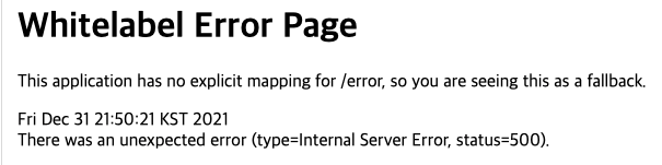 getProduct에서 NoSuchElementFoundException 예외가 발생했다면 우리는 접속한 환경에 따라 다른 에러 처리를 받게 될 것이다. 만약 우리가 웹페이지로 접속했다면 다음과 같은 whiltelabel 에러 페이지를 반환받는다.