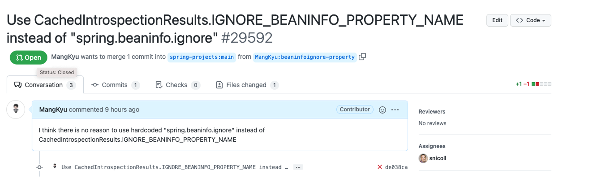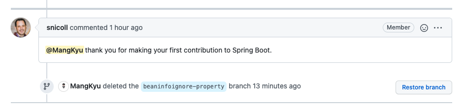 현재 SpringBoot의 동작 과정을 분석하는 포스팅을 작성하고 있습니다. 해당 소스코드를 분석하다보니 매우 작지만 컨트리뷰트를 할만한 코드를 찾게 되었습니다. 그래서 이번에는 어떻게 하면 오픈 소스에 컨트리뷰트 할 수 있는지 알아보고, 실제로 컨트리뷰트를 해보고자 합니다.