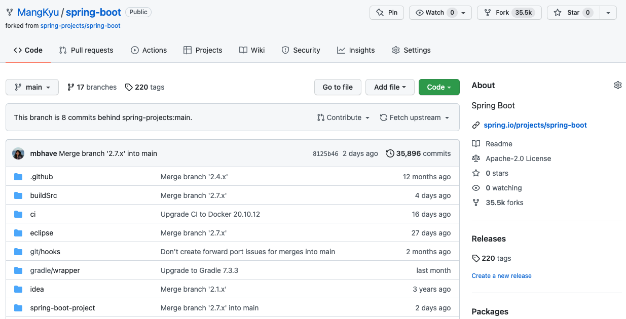 git remote add upstream https://github.com/spring-projects/spring-boot