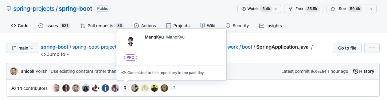 그리고 실제로 가서 코드를 보려고 하니 다음과 같이 컨트리뷰터로 추가되어 있음을 확인할 수 있었다.