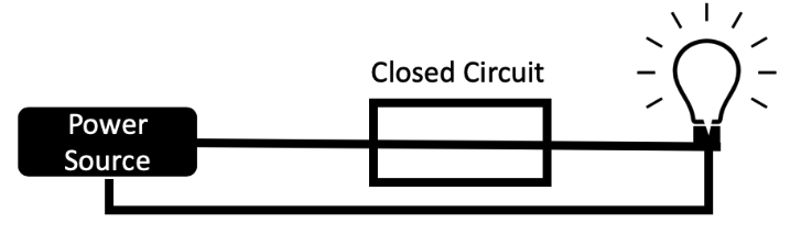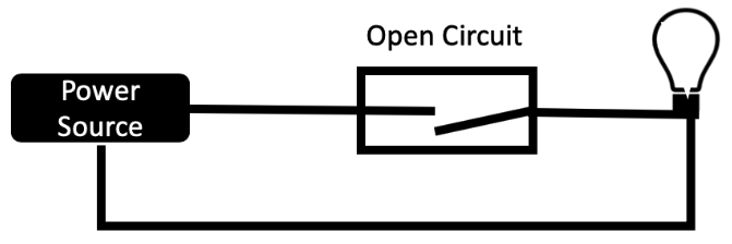 일반적으로 회로는 닫혀있어서 전류가 흐르게 된다. 그래서 전원이 켜진 상태라면 다음과 같이 전구에 불이 들어온다. 하지만 전구에 문제가 생겨서 계속해서 전류가 흐르면 위험한 상황이 되었다고 하자. 즉, 전구에 과부하가 걸려 문제가 생길 수 있는 것이다.