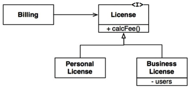- Billing 애플리케이션의 행위가 License 하위 타입에 전혀 의존하지 않으므로 하위 타입은 모두 License 타입을 치환할 수 있음