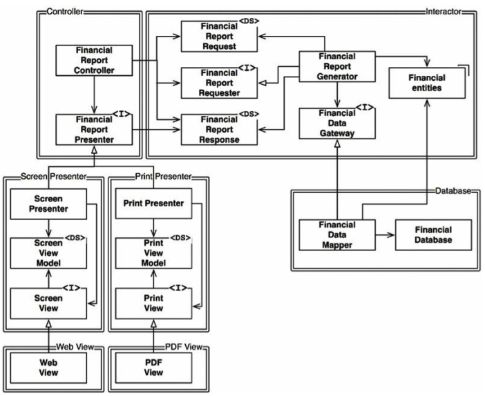 - 이중선 그림에서 Interactor와 Database 사이에 Financial DataGateway가 위치한 이유는 의존성을 역전시키기 위함