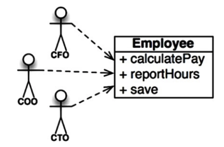 - 즉, 최종적으로 "하나의 모듈은 하나의, 오직 하나의 액터에 대해서만 책임을 져야 한다."는 원칙임