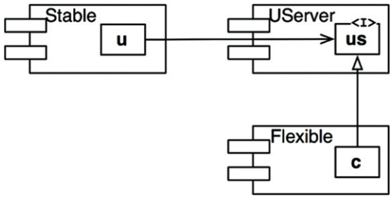 - 이를 통해 Flexible에 대한 Stable의 의존성을 끊고, 두 컴포넌트는 모두 UServer에 의존하도록 강제함