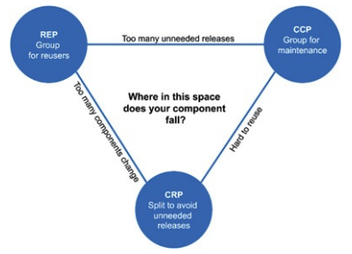 - 세 원칙은 서로 상충되는데, REP와 CCP는 포함 원칙(컴포넌트를 크게)이며, CRP는 배제 원칙(컴포넌트를 작게 만듬)임