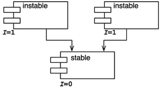 - 컴포넌트로 들어오고 나가는 의존성의 개수를 통해 컴포넌트의 불안정성(I)을 계산할 수 있음