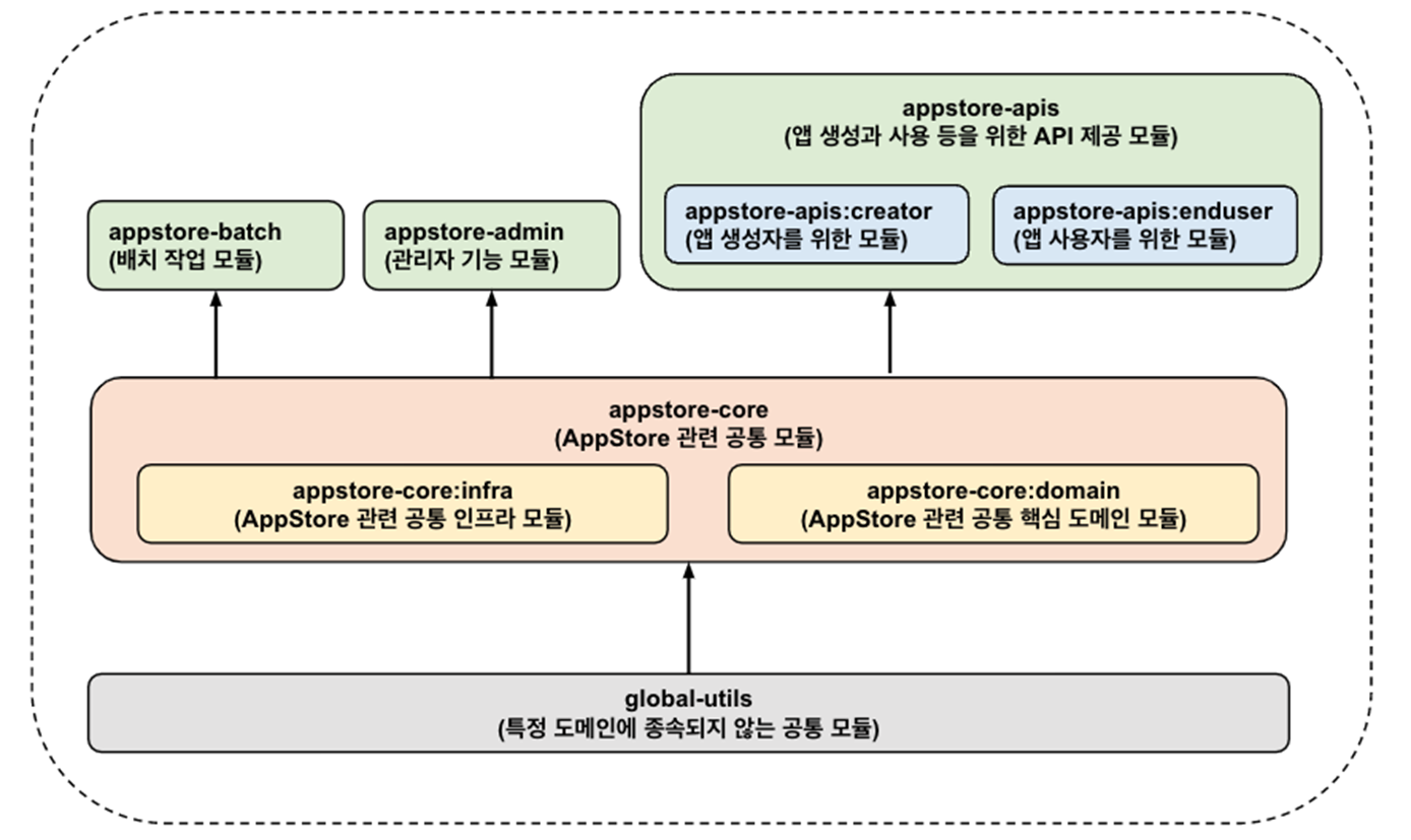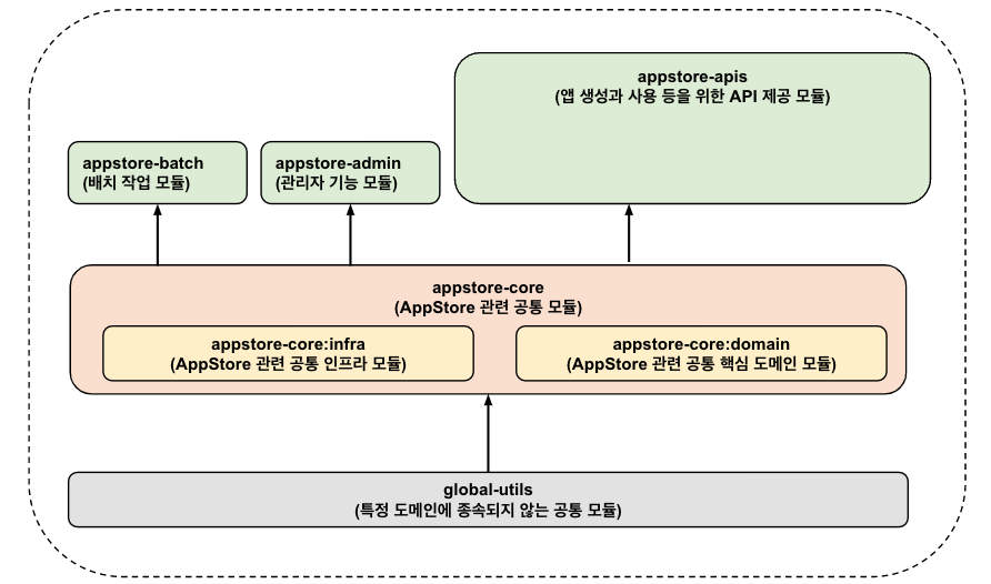 공통 모듈이라 하면 흔히 common 키워드를 떠올리는데, 여기서는 common이라는 네이밍을 사용하지 않았다. 왜냐하면 common이라는 네이밍이 해당 모듈에 대한 접근 또는 인식을 가볍게 만들 수 있기 때문이다.
