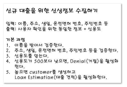 반면에 어떤 비즈니스 로직은 반드시 시스템이 있어야만 의미를 갖는데, 이를 유스케이스라고 부른다. 예를 들어 은행이 대출 견적을 제공해주려고 하는데, 고객의 개인 정보를 받고 신용도를 조회하여 신용도가 500 이상인 경우에만 제공할 수 있다고 하자. 이러한 비즈니스 로직은 시스템을 통해서만 존재할 수 있기 때문에 이를 우리는 유스케이스라고 부른다. 유스케이스에는 입력과 출력 그리고 처리 과정이 기술된다. 결국 유스케이스는 우리에게 흔히 익숙한 애플리케이션 계층 혹은 서비스 계층에 해당한다고 볼 수 있다.