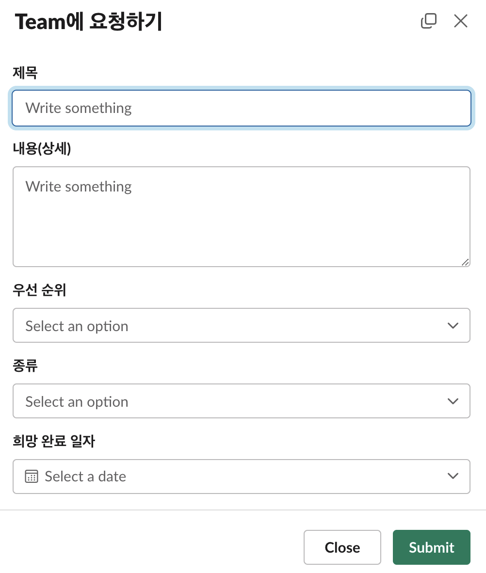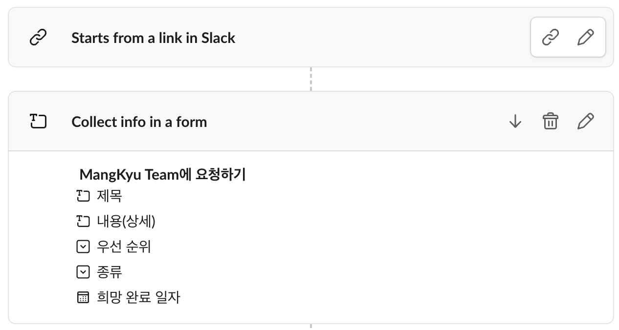 슬랙을 이용하면 많은 업무들을 자동화할 수 있습니다. 이번에는 슬랙이 제공하는 Workflow Builder(워크플로우 빌더)를 이용해 외부 요청을 접수하고, 지라 티켓을 발급하는 워크플로우를 생성해보도록 하겠습니다.