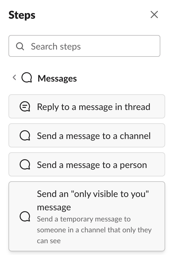 Messages의 Send a message to a channel 스텝을 활용해, 요청이 접수(티켓 생성)되면 관련 내용을 담당자들에게 알려주는 메세지를 발송하도록 하자.