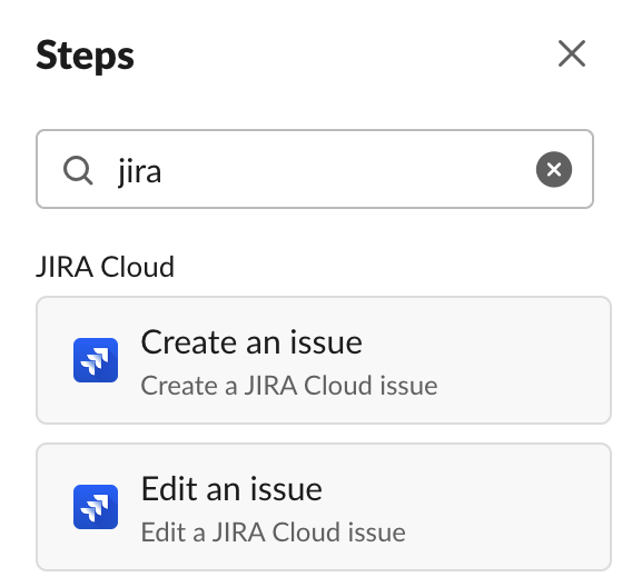 이미 만들어진 JIRA 연동 스텝이 존재한다.이를 통해 손쉽게 지라와 연동할 수 있다.