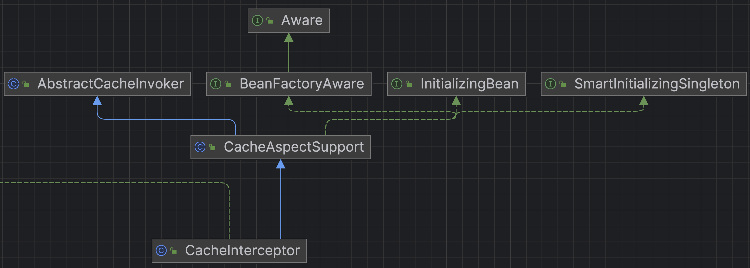 - 캐시 처리를 위한 CacheInterceptor이자 CacheAspectSupport에 의해 캐시 관련 처리가 시작됨