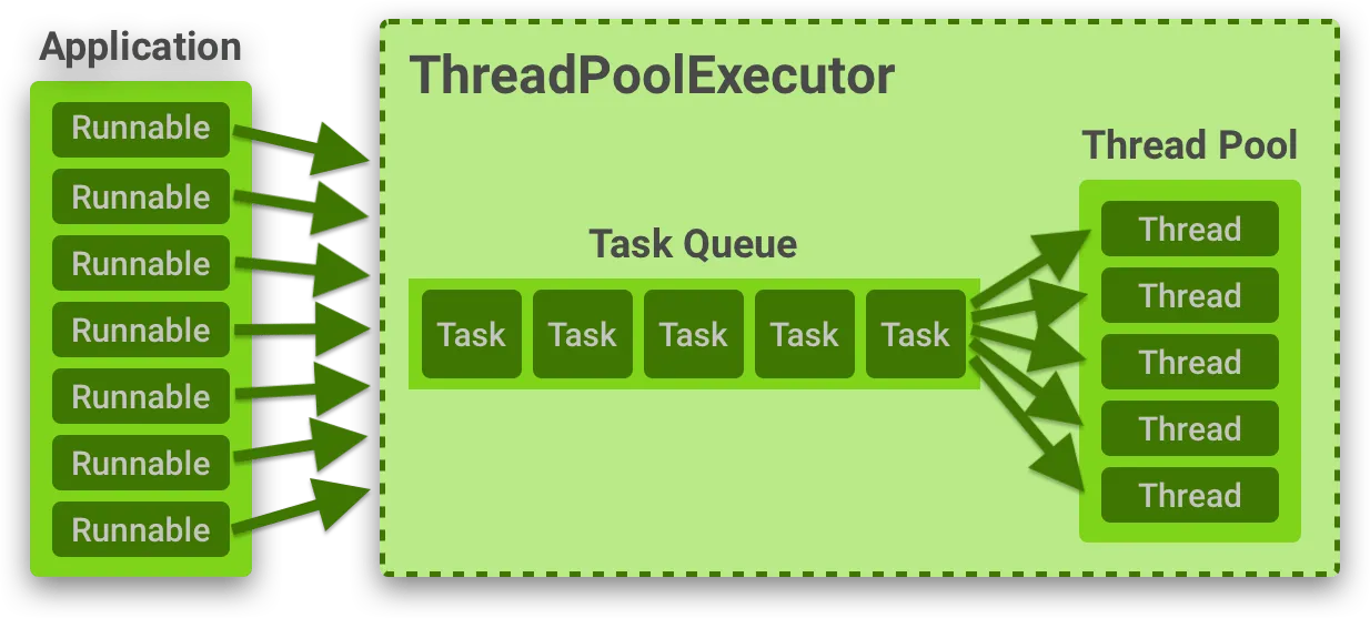 - A 작업을 처리하기 위한 스레드를 스레드 풀에 생성하고, 해당 스레드가 작업의 처리를 진행함