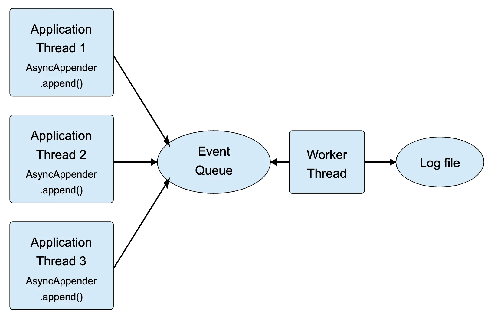 AsyncAppender은 Logback에서 지원하는 Appender 중 하나로, 로그 출력이 애플리케이션의 주요 흐름을 지연시키지 않도록 비동기 형태로 로그 처리를 진행한다. AsyncAppender은 내부적으로 생산자-소비자(Producer-Consumer) 기반으로 동작하며, 이를 위해 내부에 큐(BlockingQueue)가 존재한다. 로그를 찍는 코드를 실행하면 생산자는 로그 이벤트를 큐에 쌓고, 별도의 작업 스레드인 소비자는 큐에서 로그 이벤트를 꺼내서 이를 처리한다.