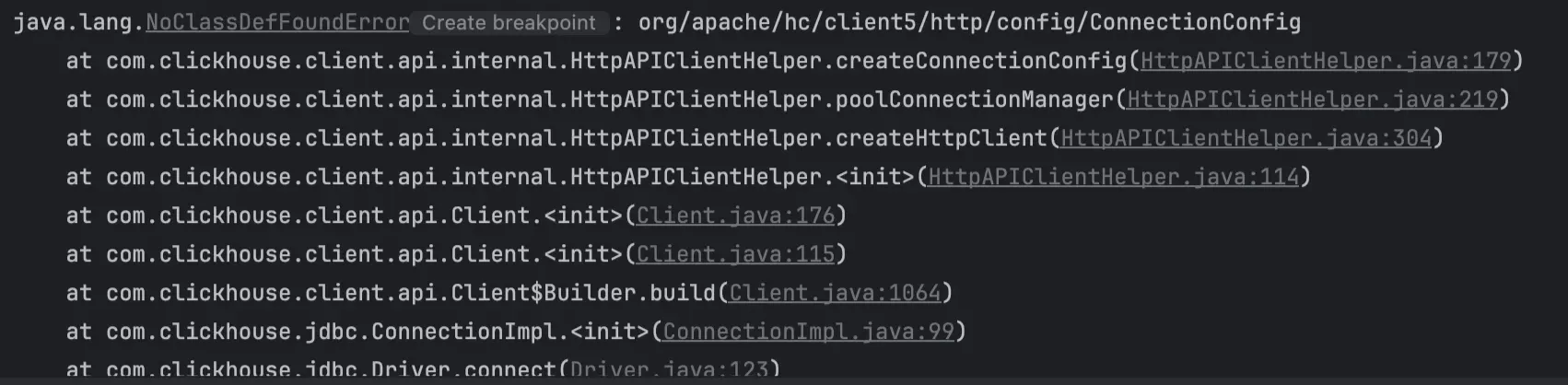 - ClickHouse JDBC: Apache HttpClient5 5.2.1