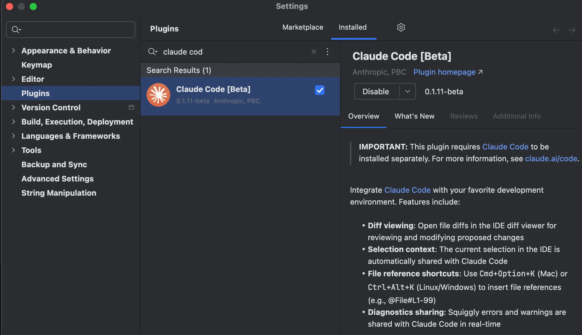 Claude Code는 터미널이 있는 모든 통합 개발 환경(IDE)에서 잘 작동한다. IntelliJ와 같은 Jetbrains 제품을 사용중이라면, 다음의 플러그인을 통해 Diff 보는 화면, 컨텍스트 공유 등과 같은 기능을 통해 사용성을 높일 수 있으니 설치해주도록 하자.