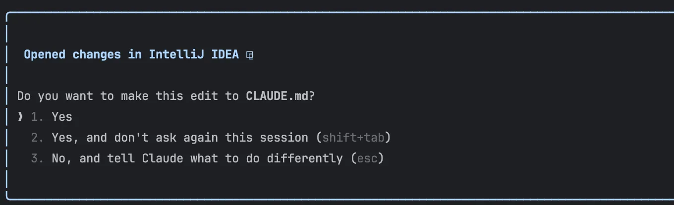 - Yes: 제안된 변경사항을 CLAUDE.md에 적용하고, 이후에도 물어봄