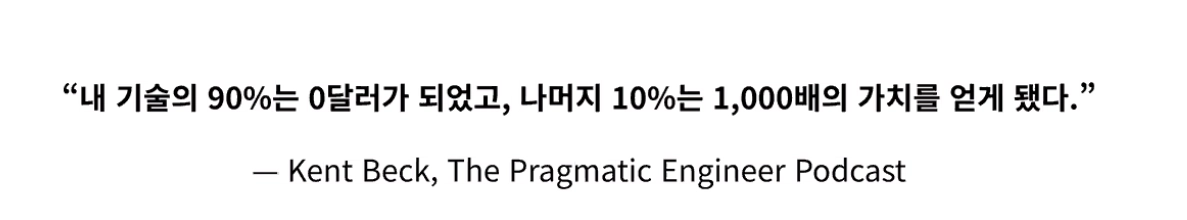 물론 미래의 상황에 따라 그렇게 변할 수도 있다. 하지만 중요한 것은 현실이고, 그 시점이 당장은 아니라는 점이다. 우리가 당장 집중해야 할 것은, AI에게 대체 당할 걱정을 하며 소흘히 하루를 보내는 것이 아니라, AI의 활용도를 높이고 극대화하여 10x 엔지니어가 되기 위한 ‘의도적 수련(Deliberate Practice)’ 일 것이다.