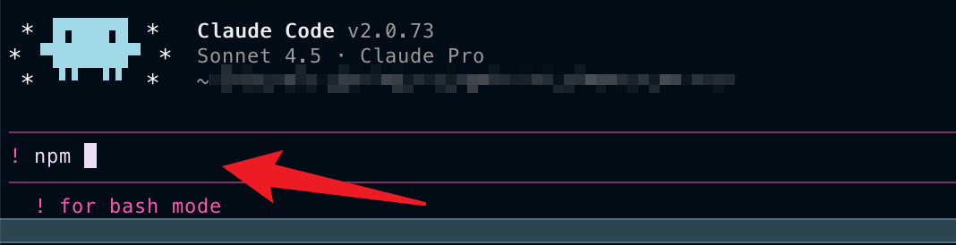 클로드에서 !를 가장 앞에 입력하면 Bash 모드로 전환이 된다.