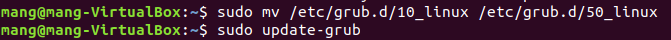 sudo mv /etc/grub.d/10_linux /etc/grub.d/50_linux