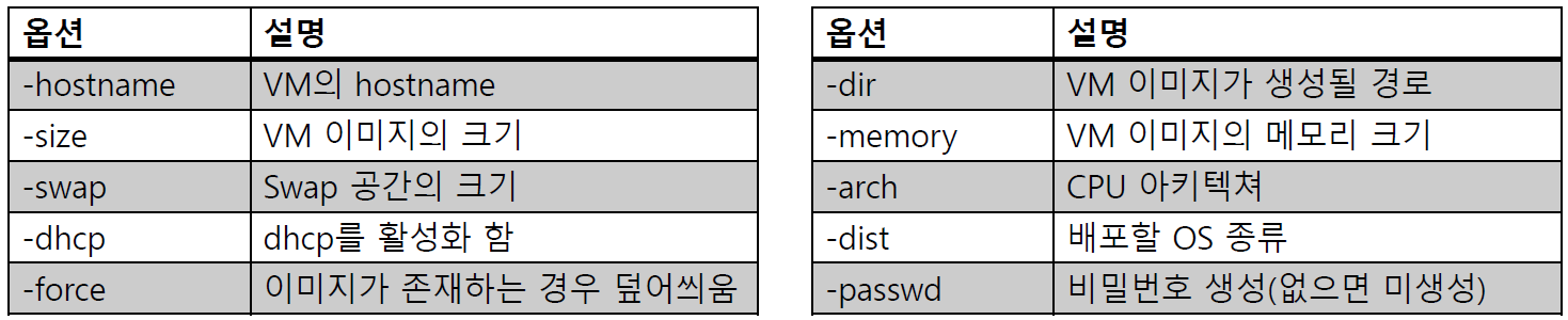 Xen은 아래와 같은 옵션을 활용해 가상머신을 생성할 수 있도록 도와준다.