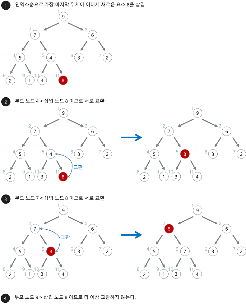 힙소트는 주어진 데이터를 힙 자료구조로 만들어 최대값 또는 최소값부터 하나씩 꺼내서 정렬하는 알고리즘입니다. 힙소트가 가장 유용한 경우는 전체를 정렬하는 것이 아니라 가장 큰 값 몇개만을 필요로 하는 경우입니다. 시간복잡도는 $O(nlog_2n)$ 입니다.