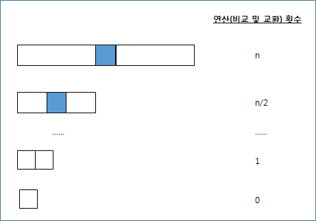 이러한 이유로 퀵선택 알고리즘의 시간복잡도는 $n + n/2 + 4/n + .... 1 = O(n)$ 입니다.