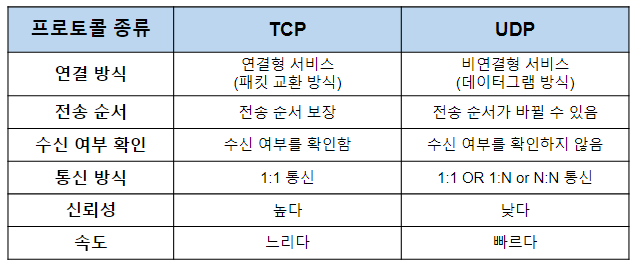 [ TCP와 UDP 차이 ]